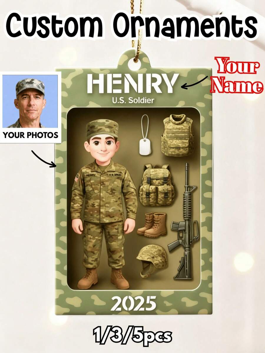1/3/5pcs Customized Soldier Decoration 2025, Personalized Military Acrylic Memorabilia, Gift For Veterans, Men And Active Duty, Customizable Name And Photo, Christmas Tree Decor, Memento Or Deployment Gift, Christmas Decor, Thanksgiving Gift, New Year Gift, Party Decor, Christmas Gift For Girlfriend, Room Decor, Christmas Ornament, Women Car Accessories