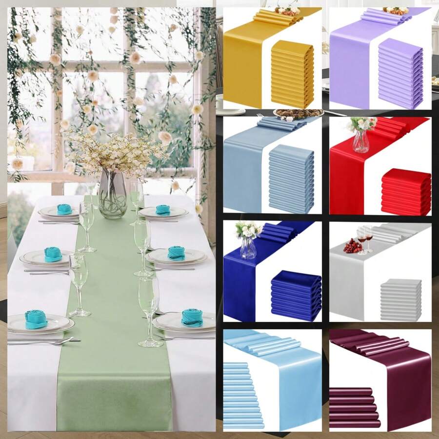 1/4/6/12pcs Satin Plain Color 11x 108 Inch Table Runner, Green Sage Color, Suitable For Wedding, Birthday Party, Banquet, Holiday, Graduation, Engagement Decoration (Multiple Colors Available)