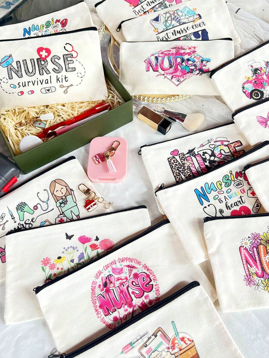 1/5/10pcs Nurse Theme Canvas Bag With Zipper Survival Kit Bag Medicine Bag Gift Bag Letter/Flower/Leopard/Heart/Rainbow Pattern Print Funny Makeup Pouch Portable Toiletry Bag For Nurse Travel Make Up Organizer Makeup Storage Cosmetic Bag Wash Bag Bathroom College Dorm Travel Stuff Multifunctional Cosmetic Organizer Cute Wallet Pouch Coin Purse