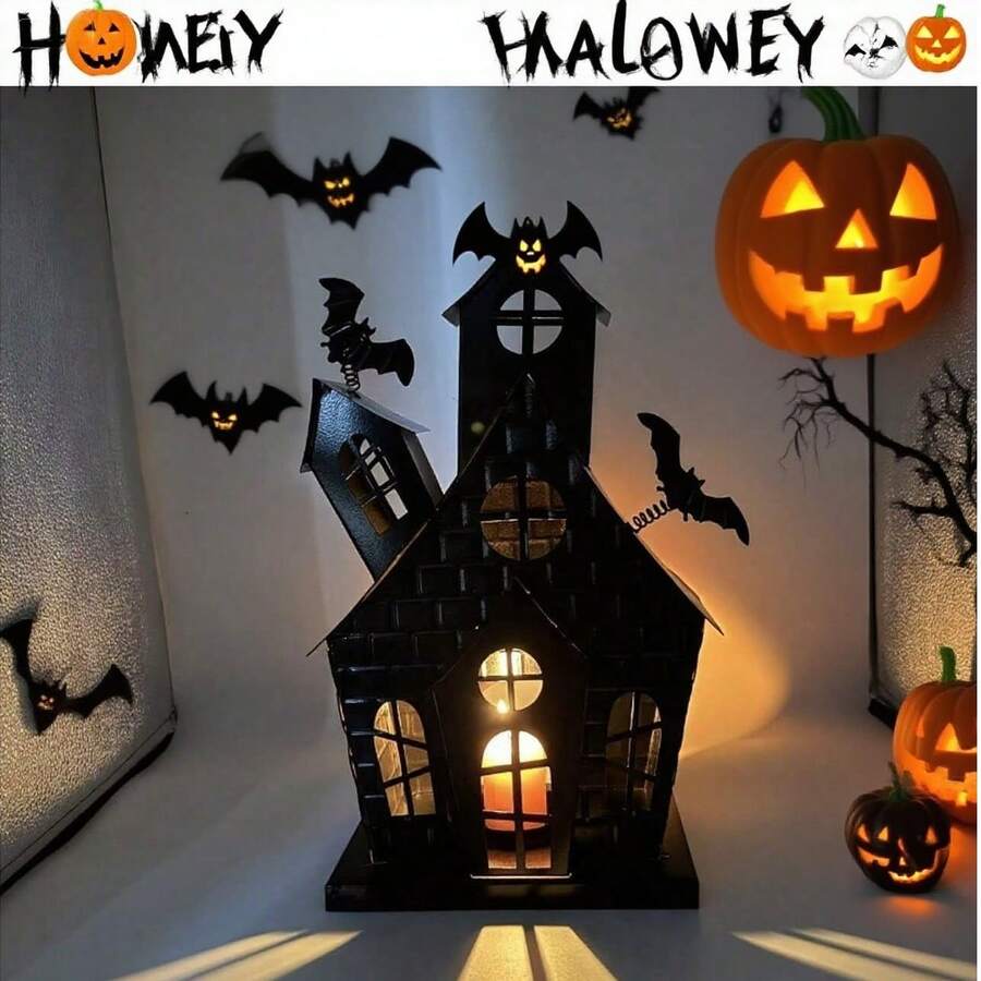 1 PC Gothic Haunted House Candle Holder - Cast Iron Halloween Desk Decor For Indoor/Outdoor Use, Spooky Manor Centerpiece For Eerie Party Ambiance. Perfect Halloween Gift Idea, Durable Haunted Mansion Theme Decoration.No Candles