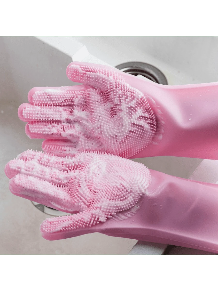 1-Pair Heavy-Duty Silicone Gloves - Waterproof, Heat-Resistant Up To 446°F, Non-Slip Grip - Dishwasher , & Powder-Free - For Kitchen, Bathroom, Car Cleaning, Pet Bathing, Household Chores - Household Cleaning Gloves, Kitchen Cleaning, Flexible Design, Highquality Material, Home Cleaners