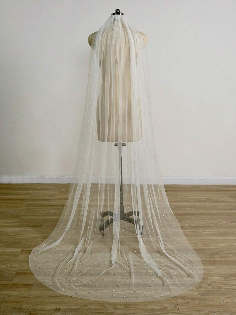 1 Pc Faux Pearl Length 2.3M(91Inch) Soft Glitter Tulle Wedding Bridal Veil With Metal Comb White Ivory Fall Clothes For Women Valentine's Day Accessories