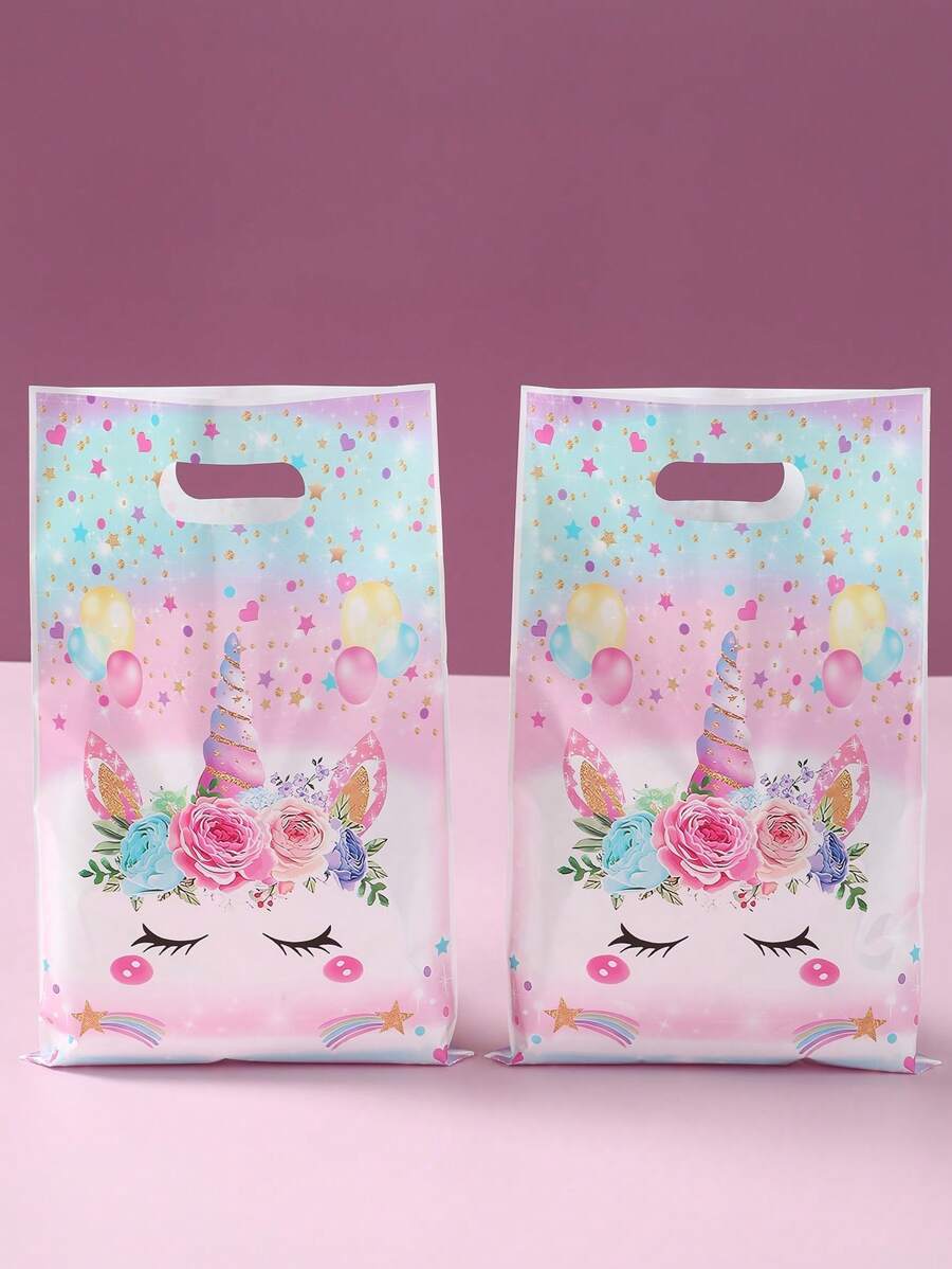 10/25/50pcs Rainbow Unicorn Birthday Party Gift Packing Bags With Handle Pink Unicorn Printed Thank You Plastic Gift Bags, Unicorn Theme Babe Shower Birthday Party Wrapping Supplies, Rainbow Unicorn Pattern Small Shopping Bags, Birthday Party Table Decorations, Birthday Party Diy Gift Pouches, Diy Baking Kitchen Packging Bags, Unicorn Theme Party Favors