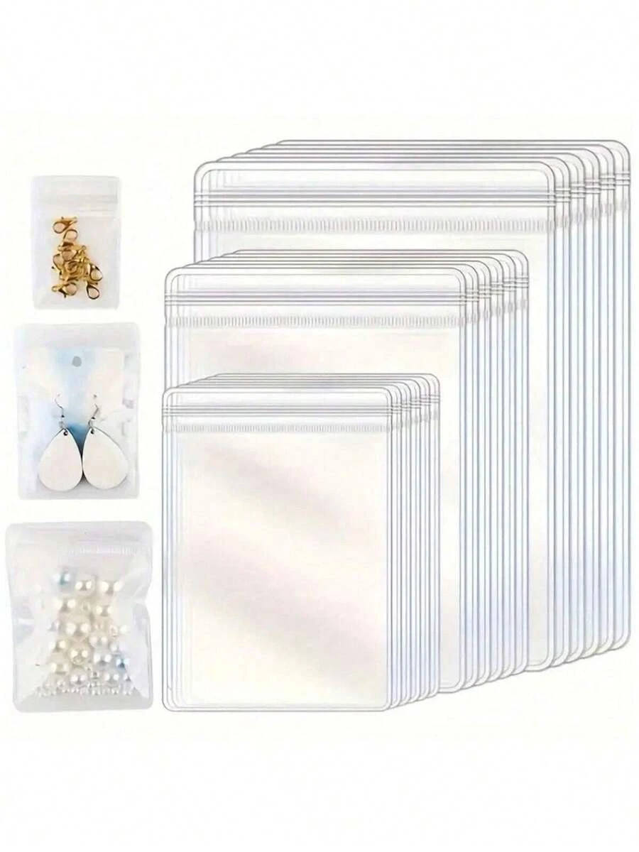 100/30/10pcs Reusable Pvc Dustproof Jewelry Bags, Gradient Color Sealed Jewelry Bags, Suitable For Jewelry, Earrings, Necklaces, Party Packaging.