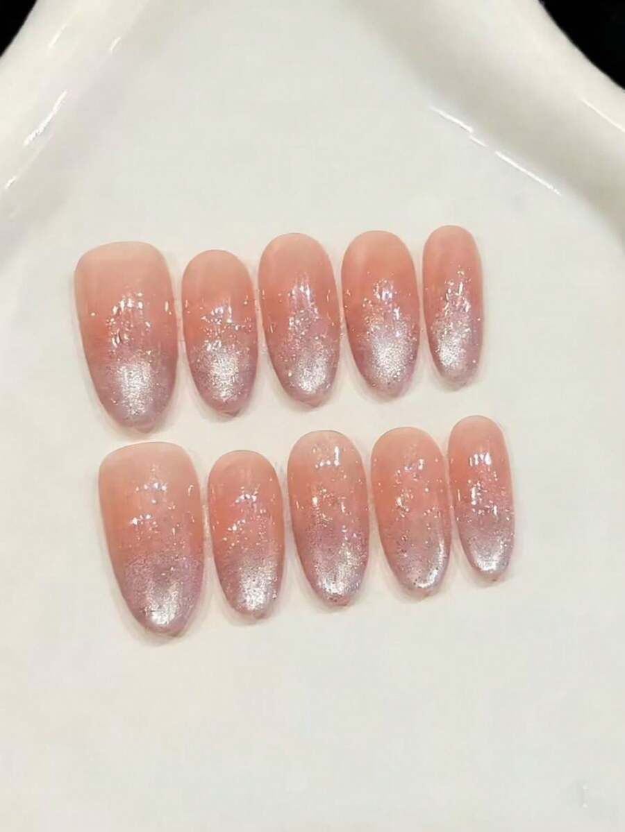 10PCS Middle Oval Handmade Press On Nails For Party And Daily Wear, Pink Color Nails, Oval Nails, Shiny And Dazzling, Easy To Wear 10pcs Y2K Handmade Press On Nails, Suitable For Girls And Women Festivals Parties And Daily Wear Nail Supplies