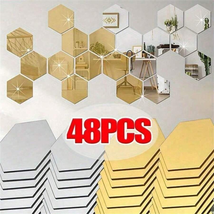 12/24/48pcs 3D Geometric Hexagon Acrylic Mirror Wall Stickers, Removable Decorative Mirrors, Hexagon Art Decor, For Home Decor, Stickers, Wall Decor, Self-Adhesive & Reusable, Shiny Feature, Glossy, For Home Decor, Room Makeover, Modern Home Decor, Renew Your Home, Rama Decor Sticker Gift Birthday Graduation Wall Decor Room Decor Wall Mirror Bathroom Decor Living Room Decor Bedroom Decor Kitchen Decor