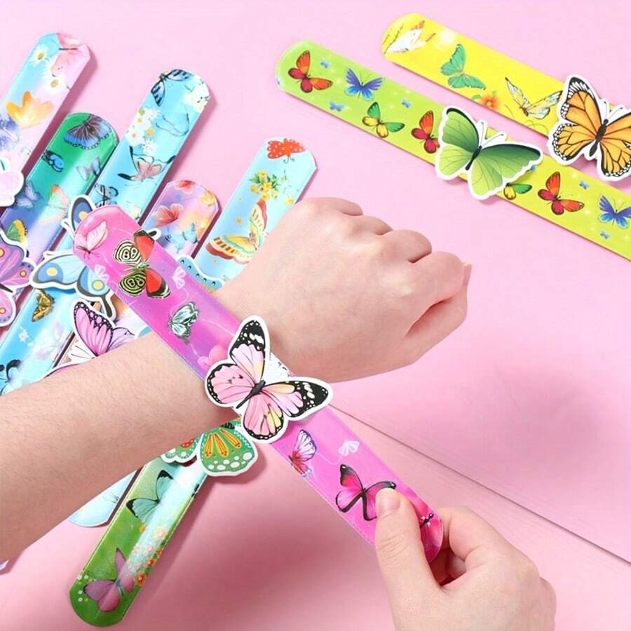 12pcs Colorful Resin Butterfly Bangle Bracelets, Vibrant Plastic Cracked Circle Bangle Bracelets With Butterfly Design, Suitable For Wedding, Bridal Shower, Birthday Party Decoration - No Power Required