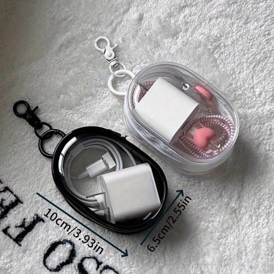 1PC Compact Clear Zippered Storage Bag With Keychain – Portable Organizer For Earphones, Chargers & Travel Accessories