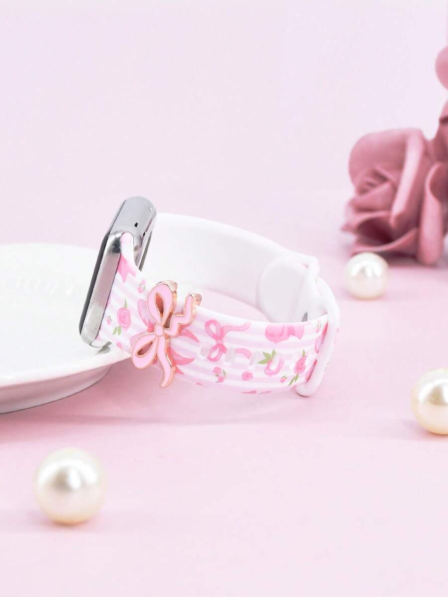 1pc Rose Butterfly Silicone Smart Watch Band, Compatible With Apple Watch 49/46/45/44/42/41/40/38mm, Fashionable Printed Strap With Butterfly Pendant, Elegant Wristband, Suitable For Apple Watch Series 10, Ultra, 2-9, 8, 7, 6, 5, 4, 3, 2, SE, Compatible With Apple Watch Accessories