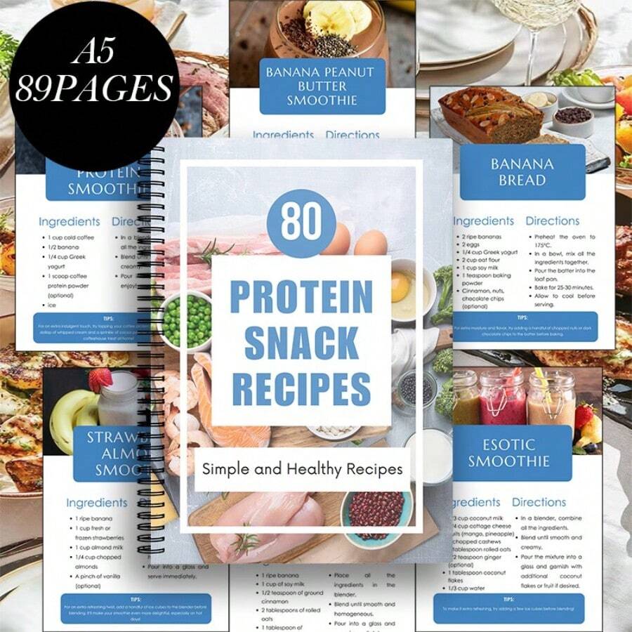 1PC Spiral‑Bound Color‑Photo Cookbook – 80 Protein Snack Recipes,Bright Ingredient Collage Style + Easy High‑Protein Recipes With Ingredient Lists & Step‑By‑Step Directions,Ideal For Fitness Beginners, Meal Prep & On‑The‑Go / Healthy Muscle Recovery Snacks Cookbook
