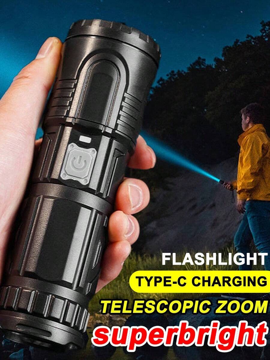1PC Strong LED Flashlight, 3 Modes Of Adjustable Focal Length Light Source, TYPE-C Rechargeable, Suitable For Outdoor Work Lighting, Fishing, Cycling, Camping, Hunting, And Emergency Lighting