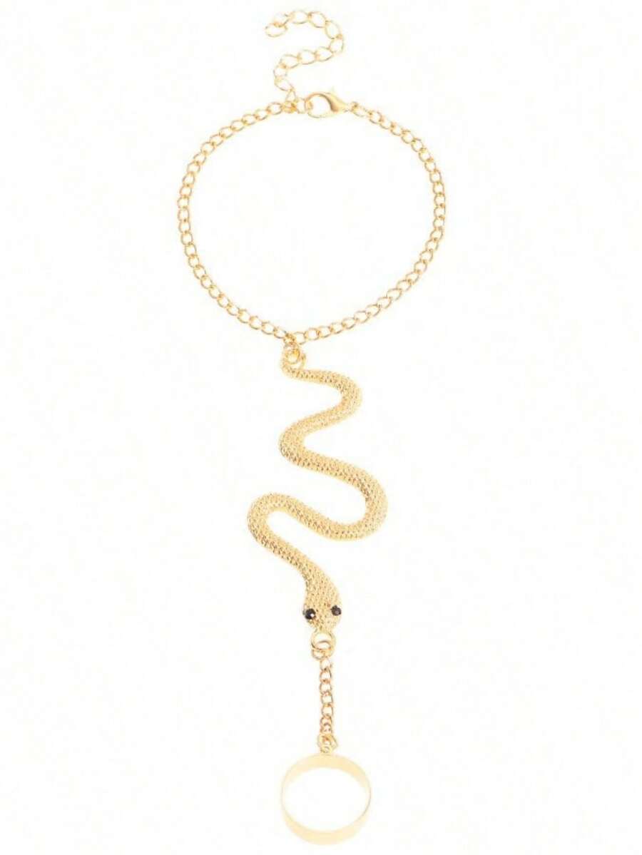 1PC Snake Design Bracelet And Ring Set Gold Plated Adjustable Two Piece Jewelry Combination Mysterious Elegant Style Gift For Women Daily Wear Date Festival Vacation Special Occasions