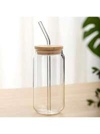 1 Glass With Bamboo Lid And Glass Straw, Easter Gift For Wife Or Mother - Cylindrical Drinking Cup Gift, 16 Oz Iced Coffee Cup, Cute Milkshake Cup, Boba Milk Tea Cup, Water Cup, Stylish Drinkware, Hand Wash Only, Reusable Straw Cup, Portable Drinkware, Office Drinkware#1 Bestseller