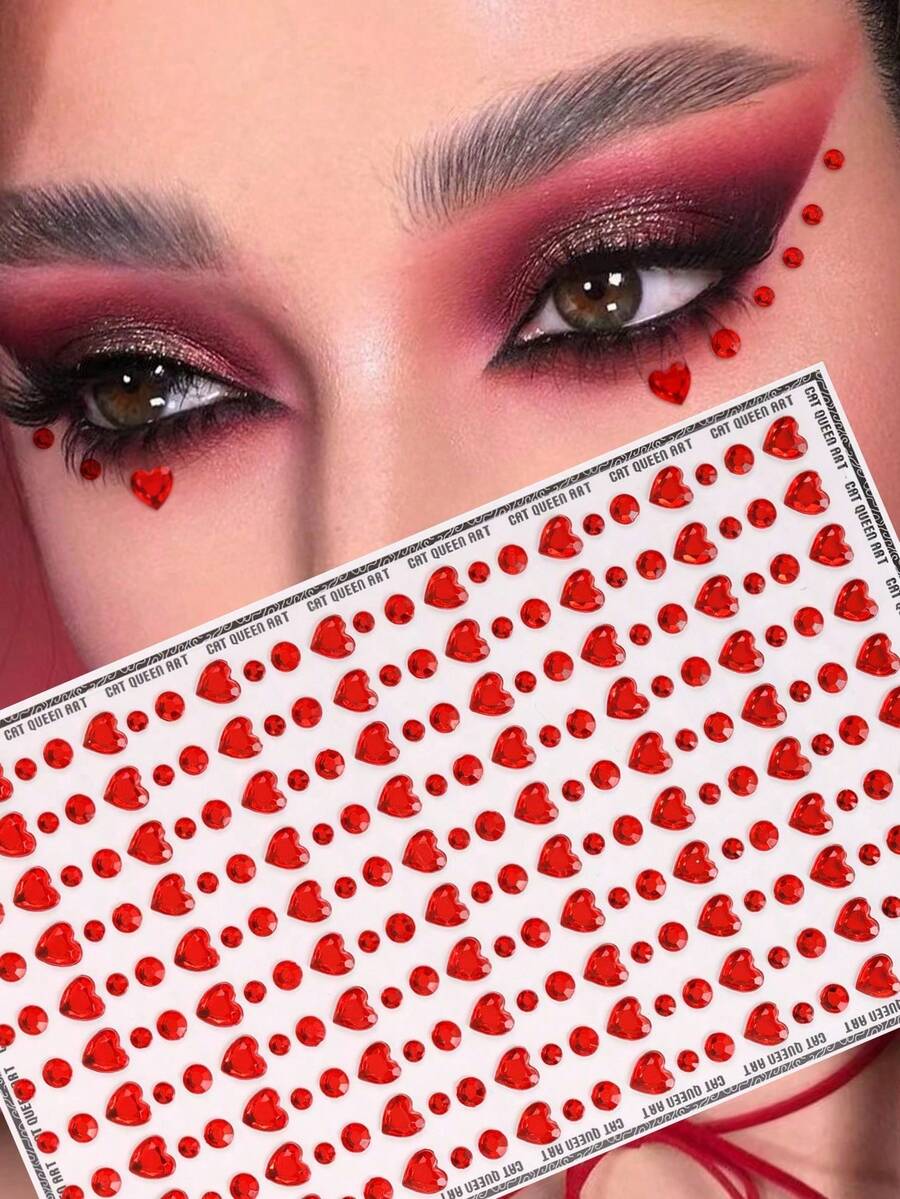 1pc 3d Simulation Large Red Heart Shaped Rhinestone Sticker For Eye/Face Decoration, Diy Music Festival/Y2k Themed Party Makeup