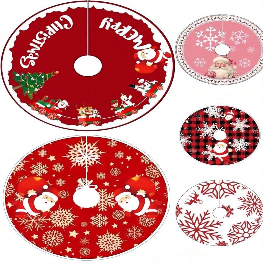 1pc, 48 Inch Vibrant Buffalo Plaid Snowflake Christmas Tree Skirt - Winter Holiday Tree Mat Decoration With Holly Ornament Baubles - Polyester Material, Festive Scene Decor, Room, Home, Office, Theme Party, And Christmas Decor Essential Best Gifts Birthday Home Decor Christmas Decorations Room Decor