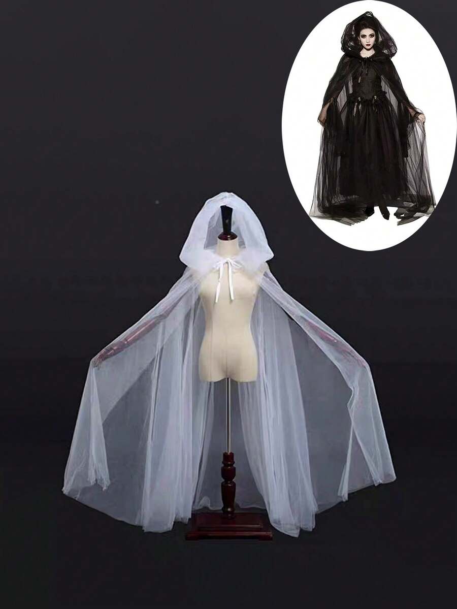 1pc Bride Shawl Halloween Party Cloak Ghost Bride Shawl Witch Vampire Cosplay Game Hooded Cape Horror Party Festival Costume Props Ideal Choice(300*150cm/118*59in)