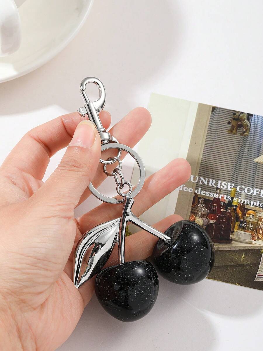 1pc Burgundy Cherry Bag Charm Keychain - Cherry, Apple, Pear, Strawberry Charm, Car Accessory, Keychain, Women's Gift, Christmas Gift, Valentine's Day Gift, Y2K
