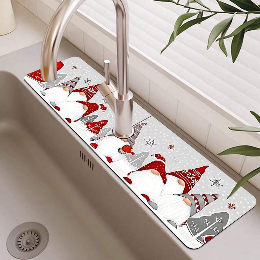1pc Christmas Theme, Christmas Gnome Pattern Diatom Mud Faucet Absorbent Pad-Anti-Slip, Moisture-Proof And Splash-Proof Guard, Suitable For Kitchen And Bathroom Countertops.