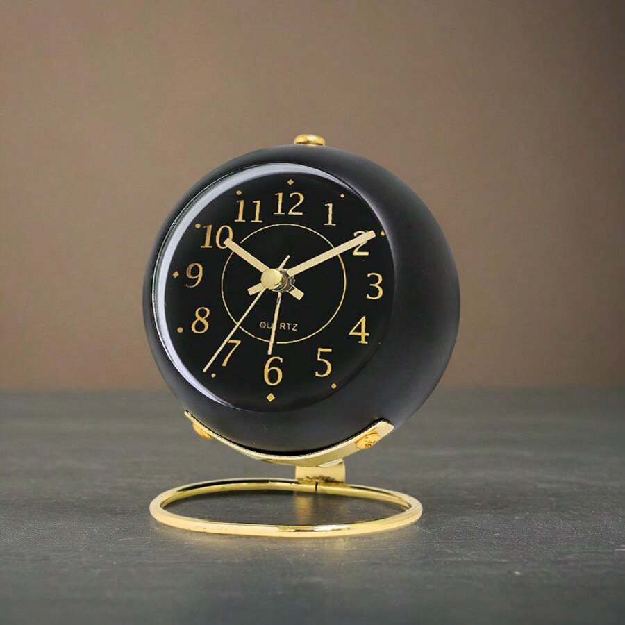 1pc Creative Luxury Metal Quartz Alarm Clock, Matte Color With Gold Foil Numerals, Built-In Night Light, Suitable For Home Bedside, Holiday Gift (Batteries Not Included),Home Decor ,Room Decor Gifts Birthday Graduation