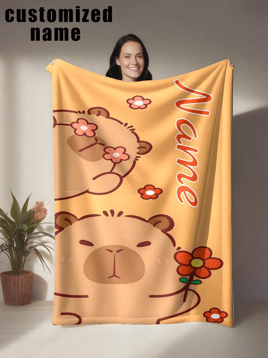 1pc Customizable Capybara Blanket – Soft, Cozy, And Warm Personalized Throw For Home, Office, Or Camping – Perfect Gift For Friends And Family, Personalized Blanket