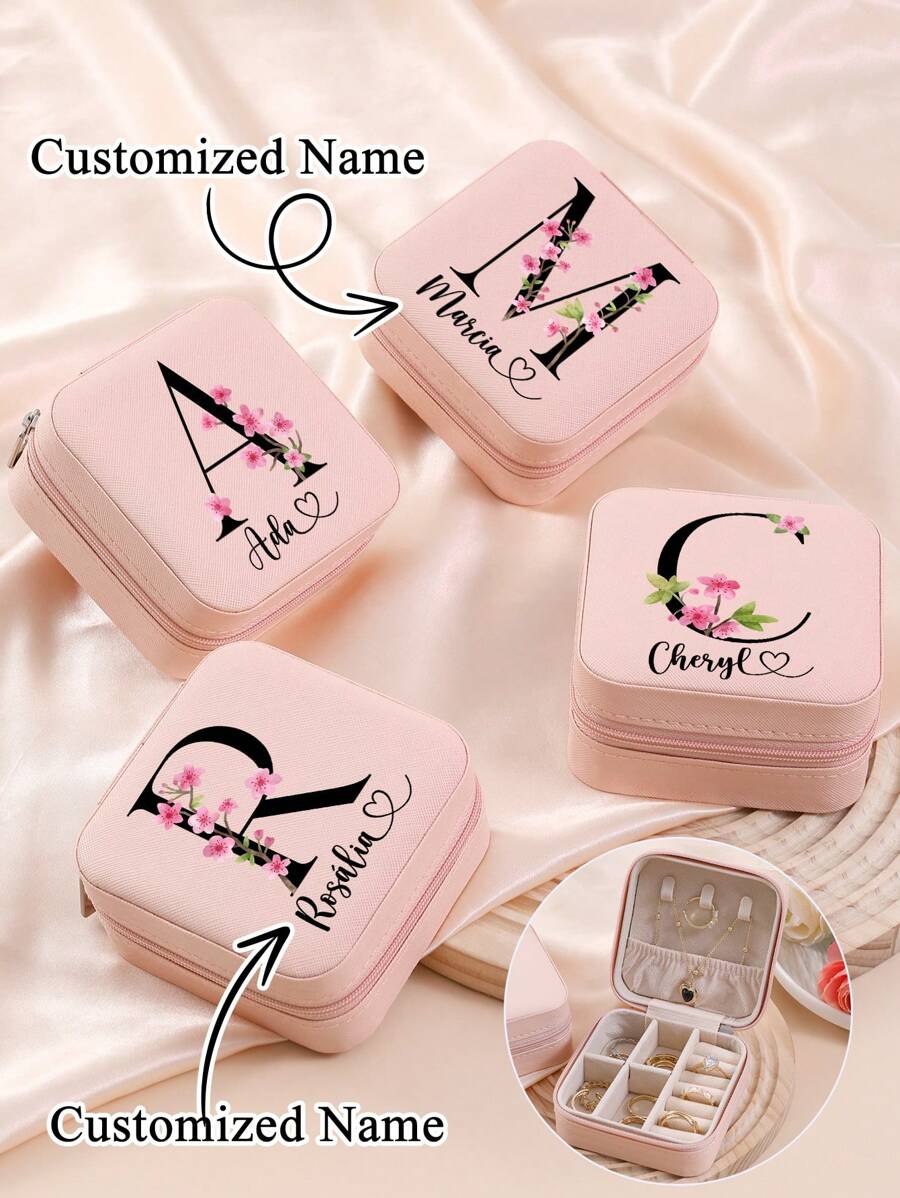 1pc Customized Name Jewelry Storage Box Ring Necklace Storage Box Portable Travel Zipper Jewelry Storage Box Suitable As A Gift For Bridesmaids, Friends, Mothers, Halloween Gifts For Birthdays, For Children's Day, For Father's Day, For Graduation, For Weddings, For Housewarming Living Room, Bedroom, Office, Tea Room, Home, Bathroom Back To School