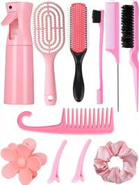 Set de 11 piezas de herramientas multifuncionales para peinado, incluye peine masajeador del cuero cabelludo, botella de spray de alta presión de 200ml, peine desenredante, scrunchies para el cabello, adecuado para todo tipo de cabello y mujeres, gran regalo para novia/familia, kit de peinado, kit de herramientas para el cabello, accesorios de belleza para el hogar, herramientas de peinado