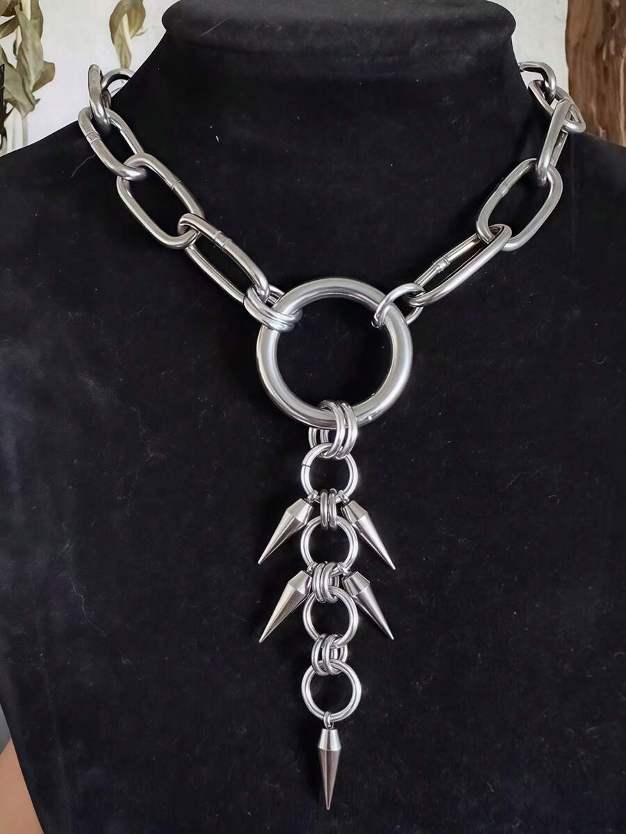 1pc Fashionable Creative Star Cone Geometric Pendant Necklace, Minimalist Gold/Silver Unisex Necklace Suitable For Party, Gathering, Outing, Performance, Music Festival, Daily Outfit Matching
