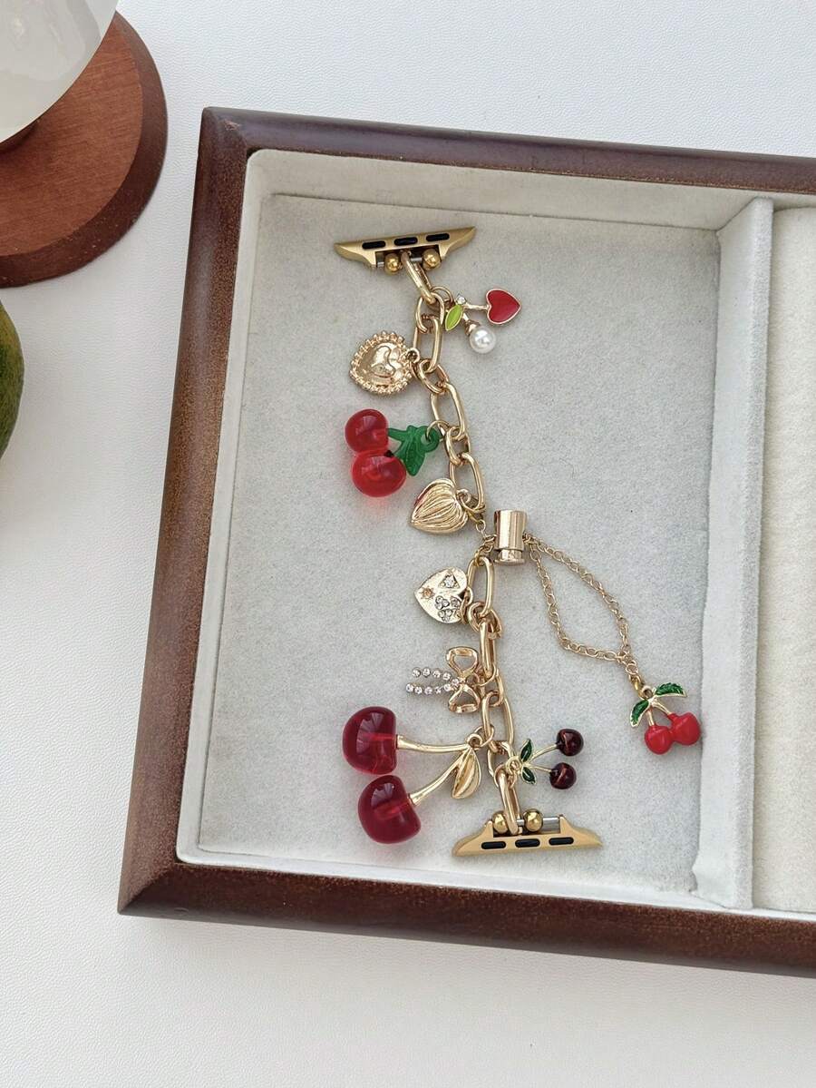 1pc Female's Women's Watch Bracelet Compatible With Apple Watch Band Love Cherry Pendant Gold Watch Strap,Compatible With Apple Watch 38/40/41/42/44/45/46/49 MM, Suitable For Ultra3/2/1/SE/11/10/9/8/7/6/5/4/3/2/1