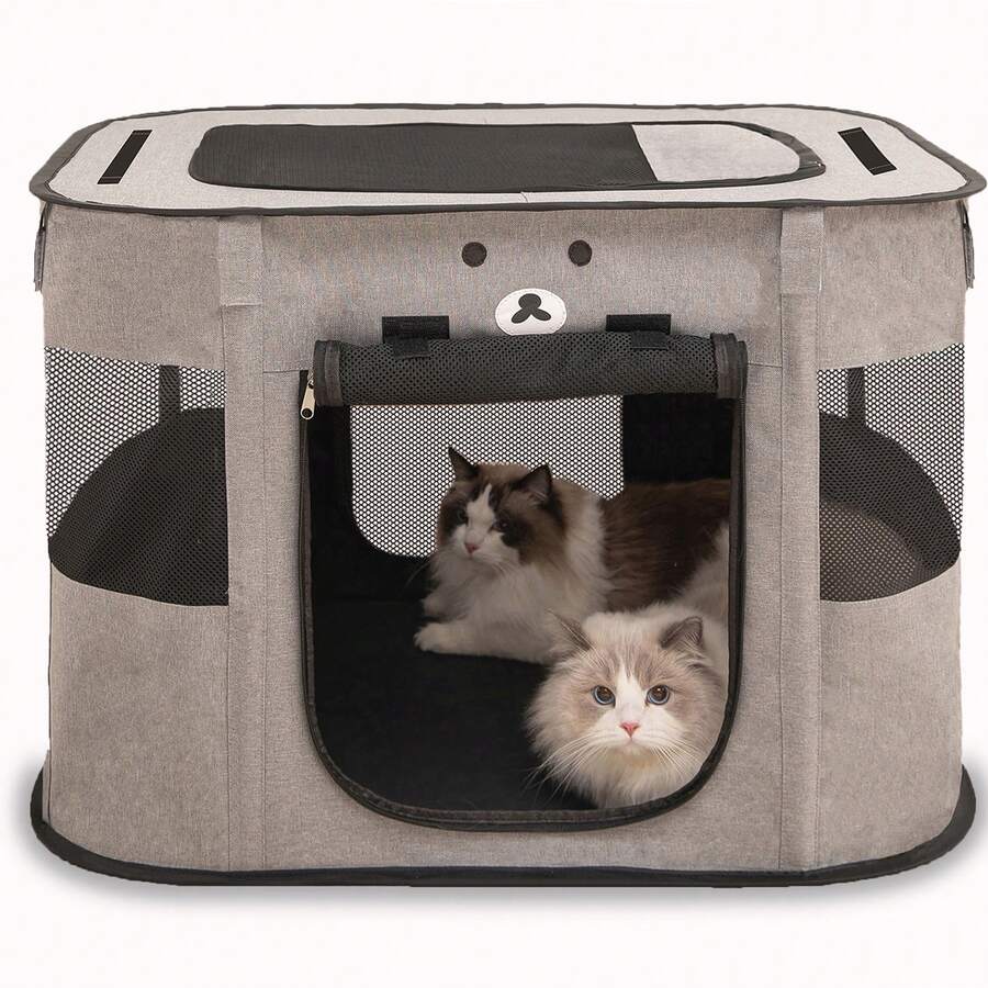 1pc Foldable & Portable Pet Playpen, Black Bear Design, 600D Waterproof Oxford Cloth + Breathable Mesh, Indoor/Outdoor Use For Cats & Dogs, Ideal For Camping, Whelping Box