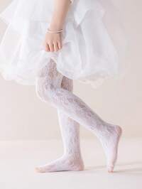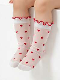 1 pieza Medias blancas para niñas/niños, con decoración de corazón, de moda minimalista, ligeras y transpirables, con diseño calado, suaves y cómodas, con piel amigable, resistentes a los desgarros, malla casual, adecuadas para volver al colegio, vacaciones, salidas, práctica de baile, actuaciones en el escenario