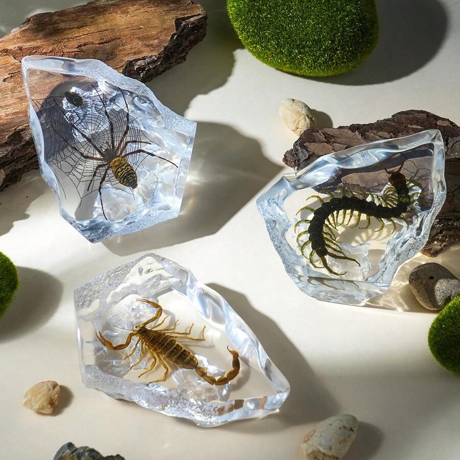 1pc Handmade Crystal Crafts Decor, Rock Ice Sculpture, Fully Handcrafted Creative Resin Drip Glue Insect Amber Art, Premium Crystal Clear High-End Gift