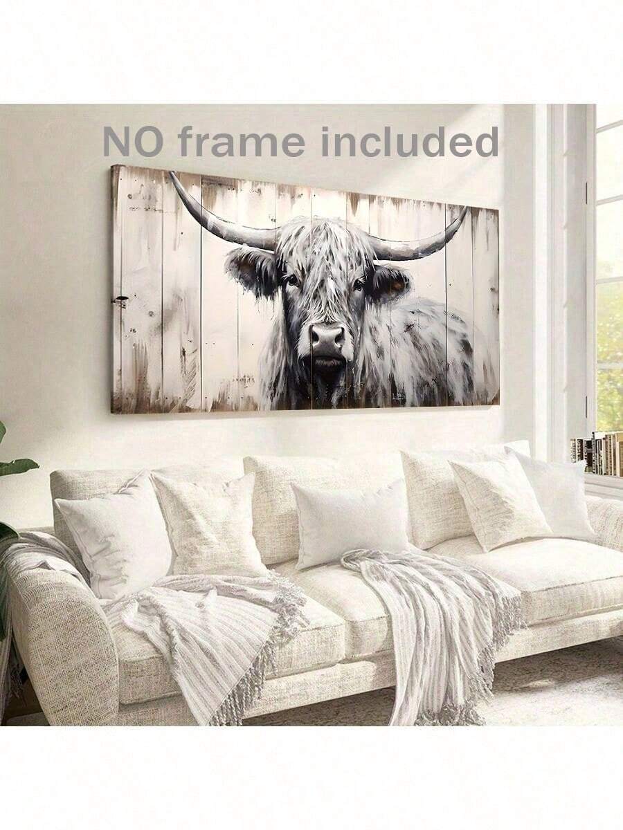 1pc Highland Cow Painting Canvas Print - Frameless Farmhouse Wall Art, Rustic Country Decor For Living Room, Bedroom, Bathroom, Office, Or Cafe - Perfect Gift Idea, Living Room Decor | Rustic Farmhouse Style | Cow Decor,No Frame