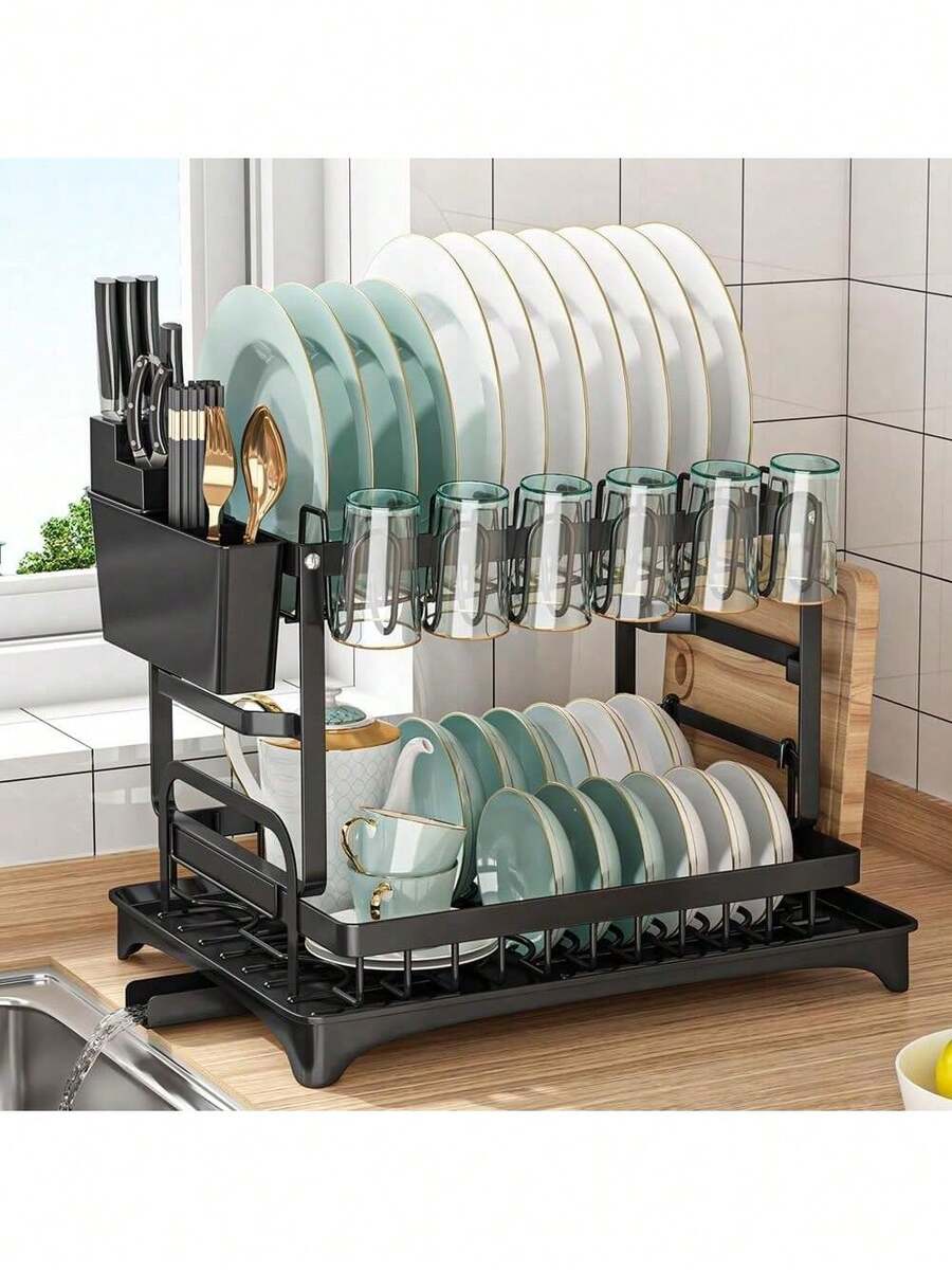 1pc Large Capacity Double-Layer Detachable Drainage Dish Rack | Multi-Purpose Kitchen Organizer For Home & Restaurant - Stainless Steel Dish Drainers Home Essentials Kitchen Organization And Storage Kitchen Accessories