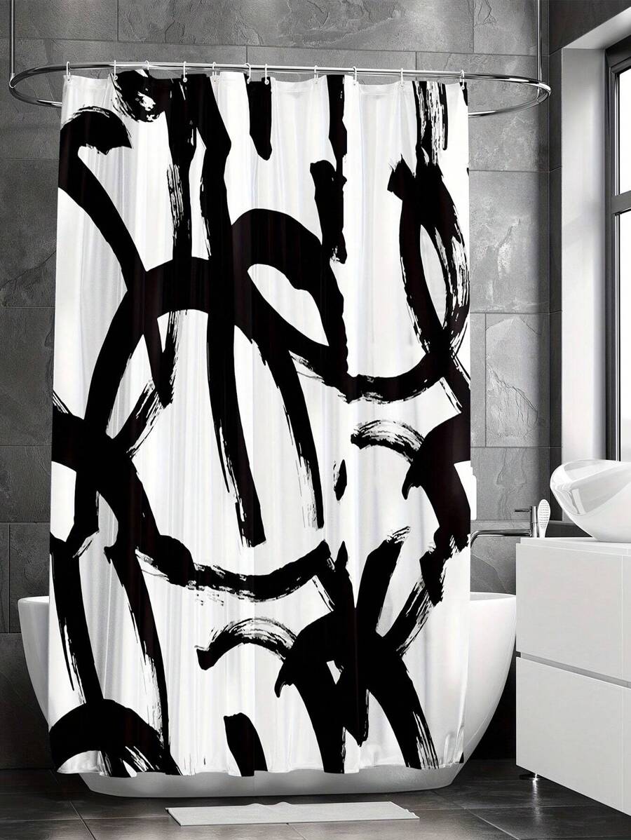 1pc Modern Artistic String Shower Curtain Waterproof Fabric Bathroom Divider Anti-Mold Wet & Dry Separation Shower Screen Home Bathroom Decor Fall Decor Bathroom Accessories Back To School