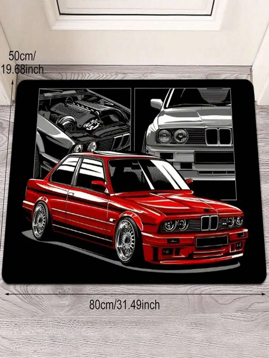 1pc New Red, Black And Gray Car Pattern Doormat, Christmas Gift, Suitable For Living Room, Bedroom, Indoor - Machine Washable - Flannel Material, Delicate Wrap, Skin-Friendly, No Pilling, Slightly Water-Resistant Easy Care, Odorless - Ideal For Home Decor, Room Decor, Living Room Carpet, Bedroom Carpet, Bathroom Carpet