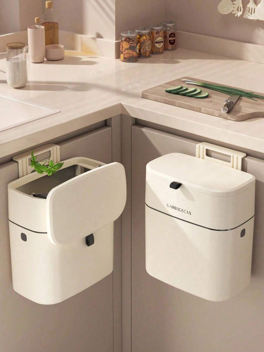 1pc Slimline Wall Mounted Trash Can - High-Capacity, Aesthetically Design With Lid - Space-Saving Garbage Can For Home Use - Perfect For Living Room, Toilet, And Kitchen