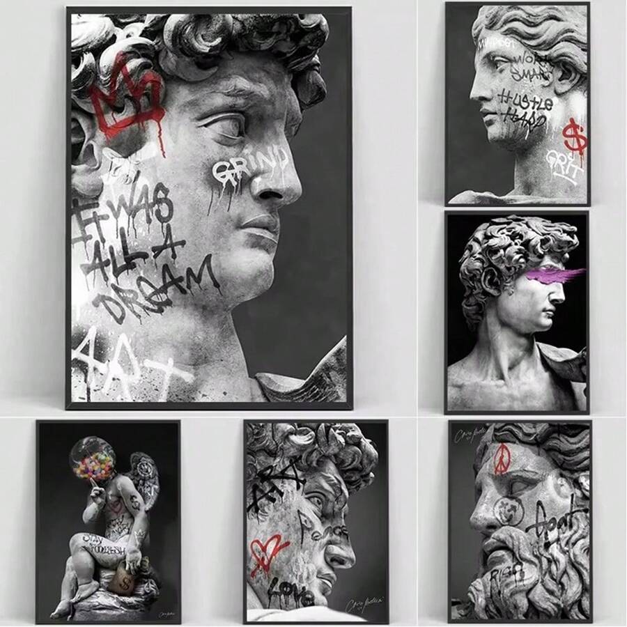 1pc Wall Arts Posters Optional Frame Modern Canvas Posters, David Statue Graffiti Art Canvas Painting David Head Sculpture Posters And Print Street Wall Arts Picture Room Decoration, Frameless ,Wall Art With Frame