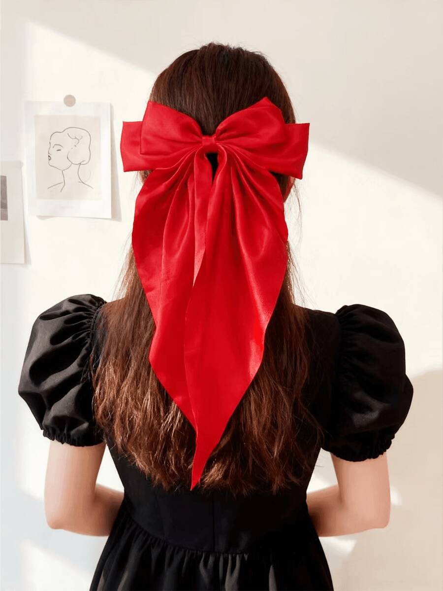 1pc Women's Large Bow And Ribbon Decoration Fashionable Hair Clip, Used For Hair Decoration Cute Valentine's Day Clip Hair Clip, School Supplies, Elegant, University, Women's Winter Clothing, Bow, Christmas Decoration Hair Clip, Claw Clips, Hair Claws, Hair Slide, Hair Barrettes