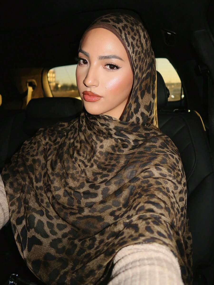 1pc Women's Bohemian Style Brown Leopard Print Hijab, Soft And Windproof Scarf/Shawl For Spring/Summer Street Style, Versatile Accessory