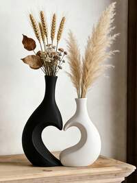 2pcs/1 Set Of Plastic Heart-Shaped Vases, Vases, Nordic Style Decorative Vases, Black And White Minimalist Vases, Suitable For Dry Flower Decoration In Living Rooms, Bedrooms, Desks, Decorative Scenes, Room Decoration, Home Decoration, Offices And Bedroom Accessories, Restaurant Decoration, Bedroom Supplies, Living Room Supplies, Gardening Supplies, Household Supplies, Gifts For Women, Gifts For Men, Gifts For Family, Gifts For Friends #2 Bestseller