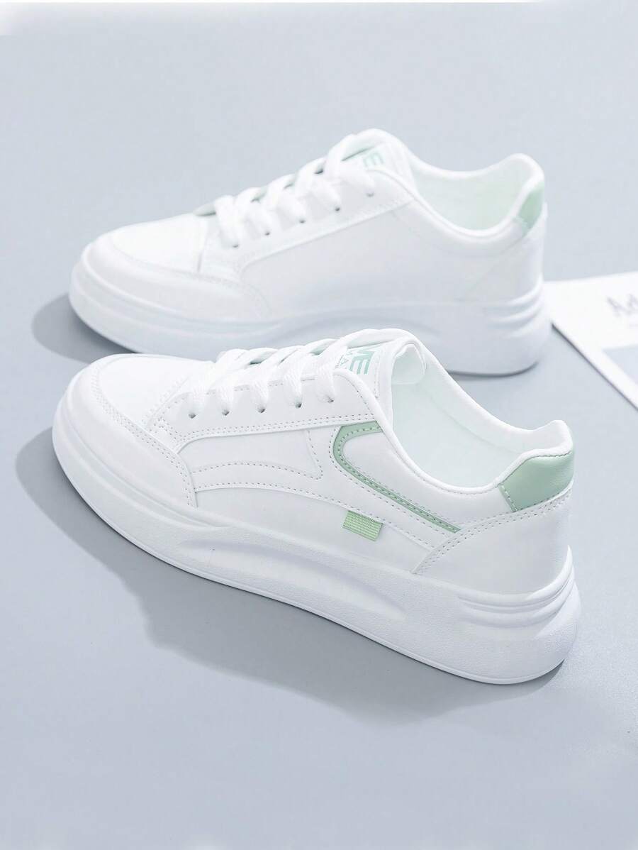 2025 New Lace-Up Thick Sole White Skate Sneakers For Women, Fashionable Casual Versatile Waterproof Platform Shoes, Spring/Autumn