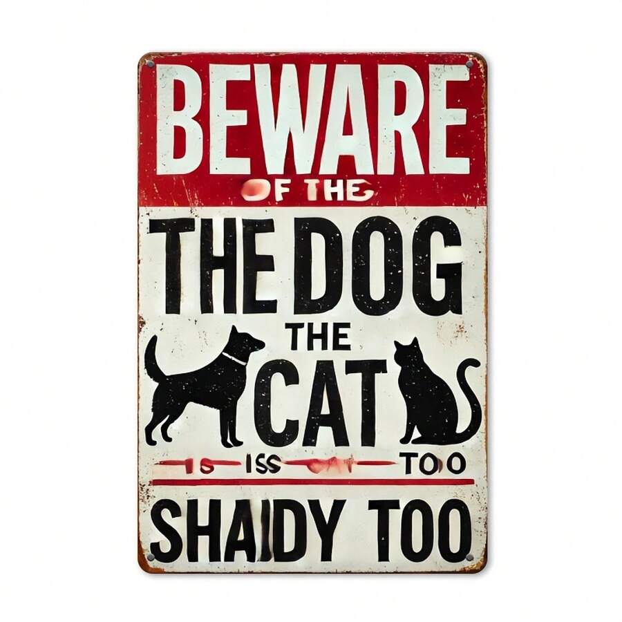 2D Flat, Integrated, 2D Flat, 8x 12inch Interesting Dog Warning Metal Sign - Beware Of Dogs And Sneaky Cats Sign, Suitable For Yard Fence Outdoor Decoration Gift Christmas Decoration, Perfect For Room Decoration