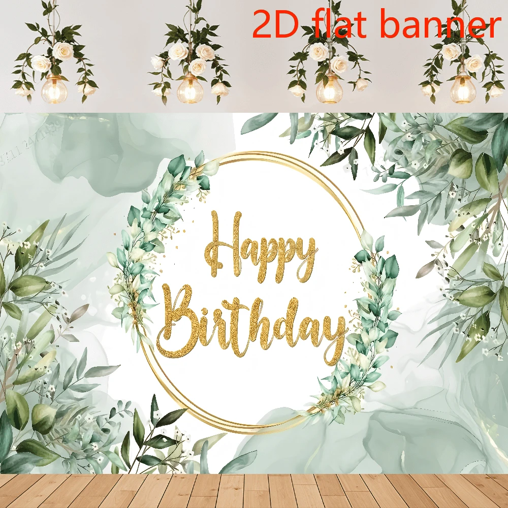 2D Plane1pc Happy Birthday Backdrop, Vinyl Greenery & Succulent Eucalyptus Leaves, Universal Seasonal Decor For Indoor & Outdoor, No Electricity Needed
