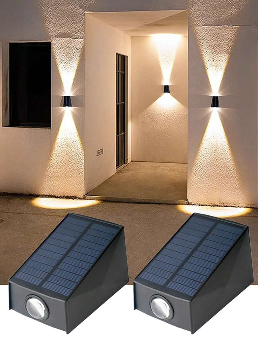 2pcs/4pcs Solar-Powered Upper And Lower Wall-Washing Lights, Outdoor Waterproof Wall-Mounted (1000mAh) Ultra-Bright Floodlights, Double-Sided Concave And Convex Mirror Wall Illumination Lights, Suitable For Commercial Streets Or Outdoor Garden Wall Decoration Lighting, Garden Terraces, Fences, And Family Courtyards, Suitable For Various Scenarios
