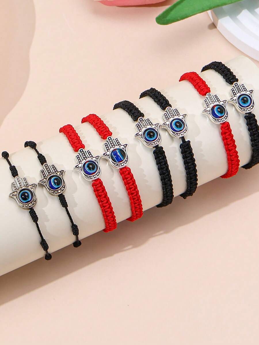 2pcs/Set Alloy Palm Friendship Bracelets, Retro Braided Couples Bracelets, Turkish Evil Eye Bracelets