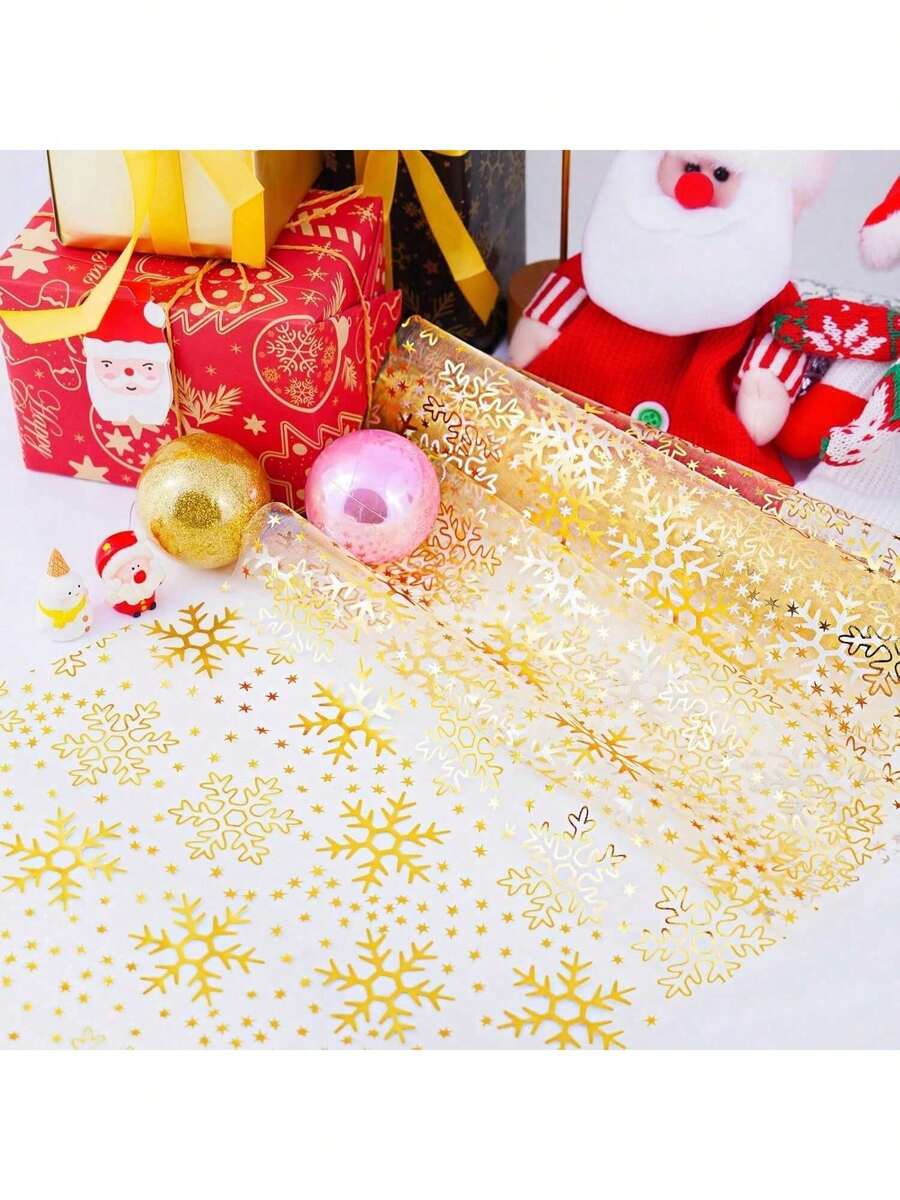 2pcs/Set Christmas Gold Snowflake Table Runner 11*197 Inches, Shiny Gold Foil Decor For Christmas, Holidays, Home, Party, Kitchen, Daily Use, DIY