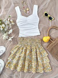 SHEIN SLAYR KIDSSHEIN Set de 2 piezas para adolescentes: Top de tirantes holgado + Pantalones largos, informal, de moda, versátil, adecuado para fiesta, salida, sesión de fotos con hermana, parque, campamento, vacaciones, ocio diario #6 Más vendidos