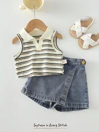 en Botón frontal Conjuntos de camisetas sin mangas para niñas