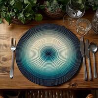 Manteles individuales redondos con textura geométrica en degradado azul, minimalistas modernos con vibra curativa oceánica, disponibles en paquetes de 1 pieza, 2 piezas, 4 piezas, 6 piezas, 8 piezas y 300 piezas, tamaño: 14.17*14.17 pulgadas (36*36cm), hechos de 100% tela de poliéster, lavables a máquina, lavables a mano o limpiables en seco Local