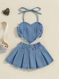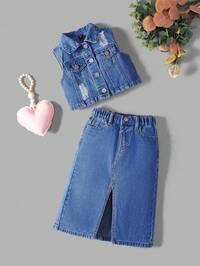 en Plano Conjuntos de dos piezas de mezclilla para chicas jóvenes
